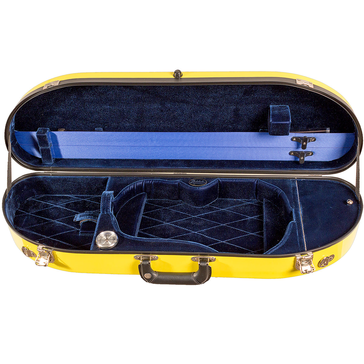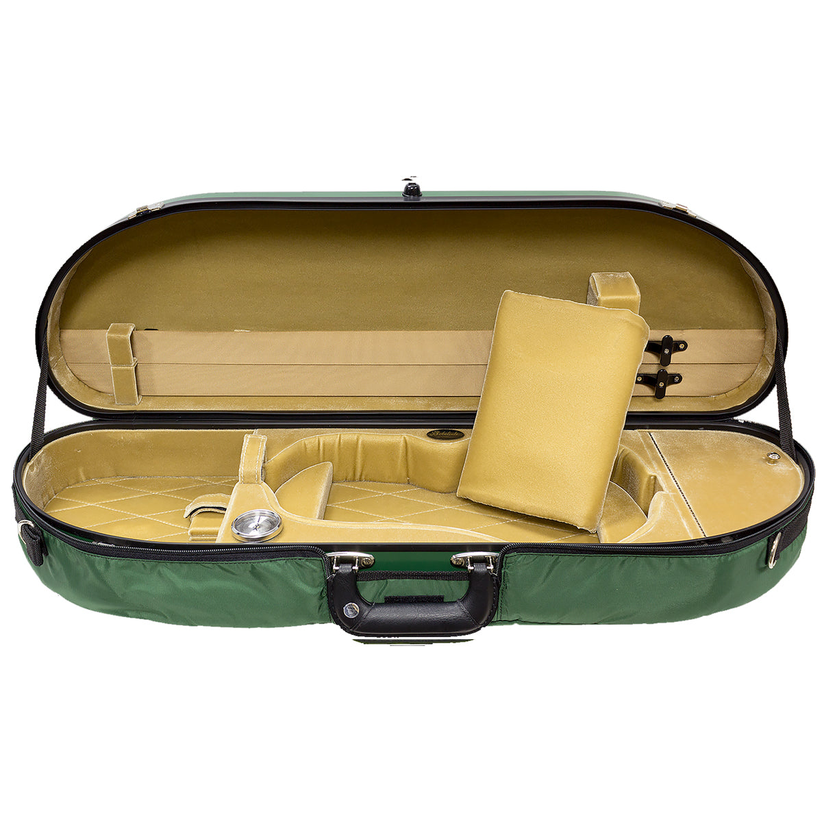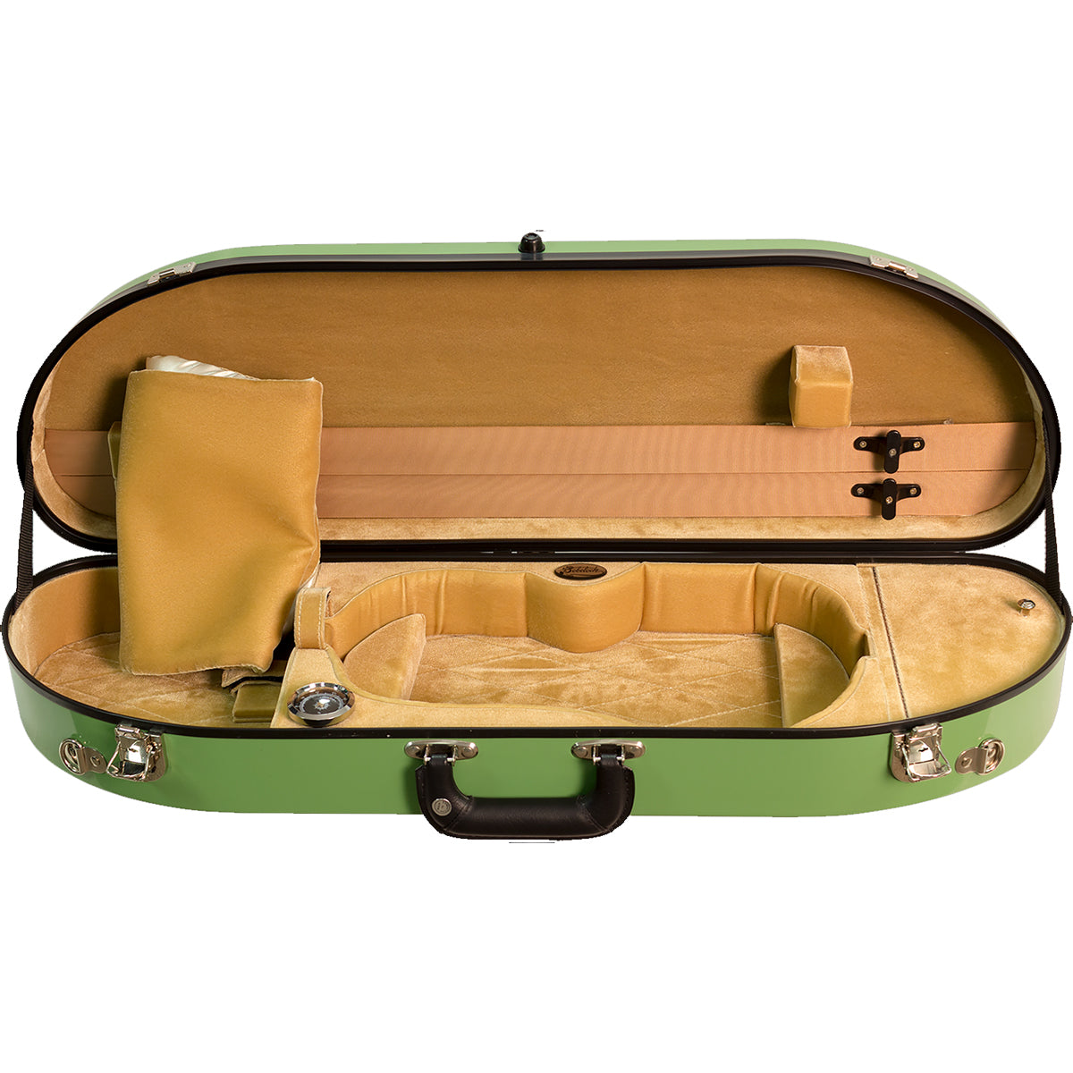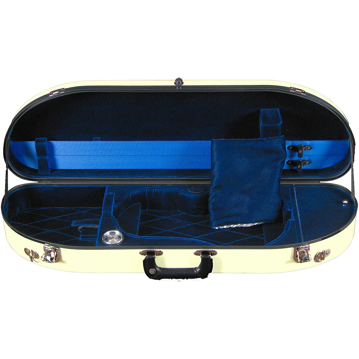 The half-moon shape is a popular compromise between the oblong and shaped violin case designs. It is small and light enough to be easily carried, yet has ample interior space for accessories and a full-length exterior music pocket. The genuine fiberglass exterior is extremely protective.
