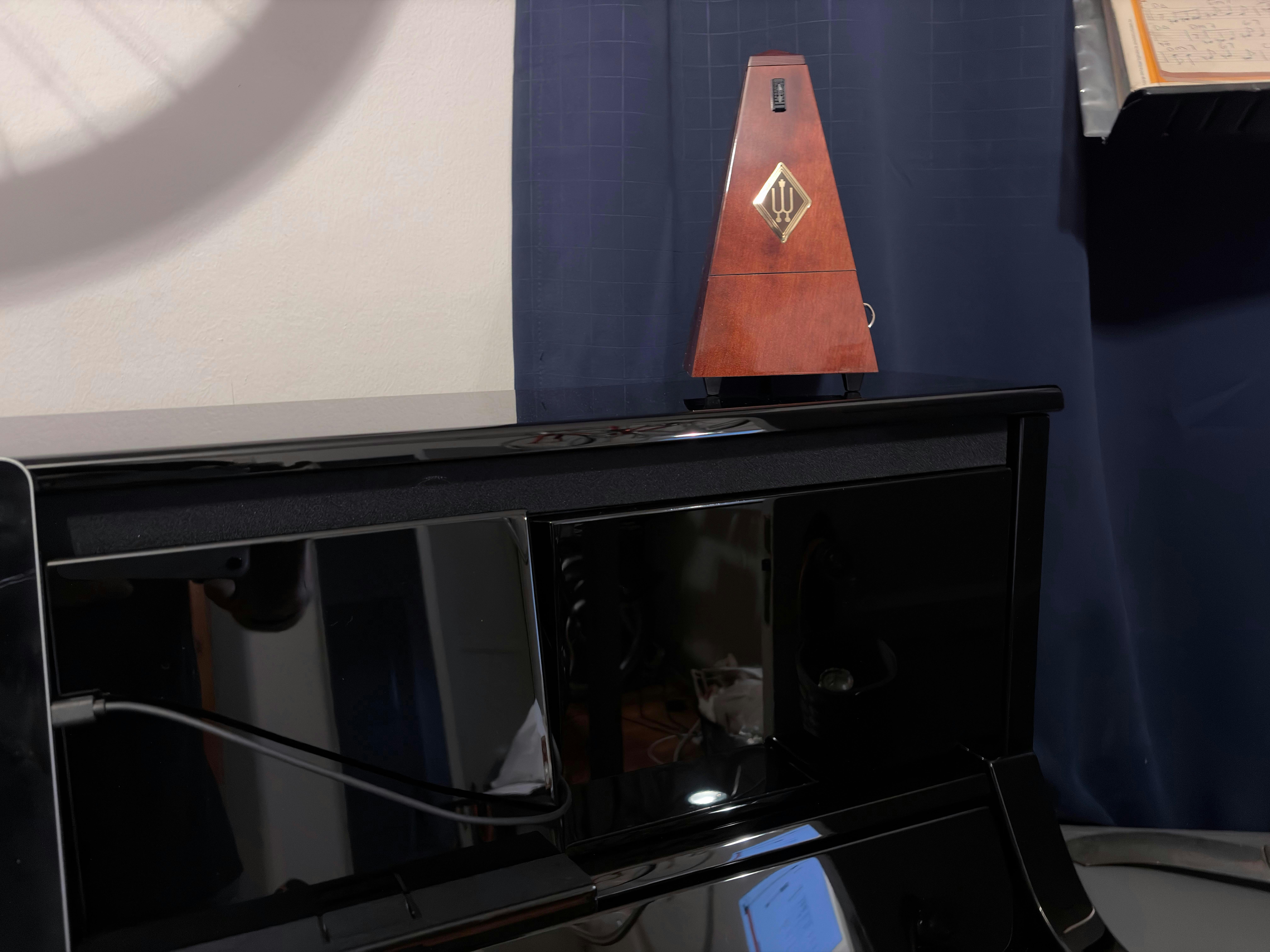 A beautiful, precision, pyramid-style, wooden metronome from Wittner. Solid wood exterior (not veneer or laminate) with mahogany stain and a high-gloss finish. An extraordinarily handsome and reliable machine. A gorgeous addition to any music studio. Hand-crafted in Germany.